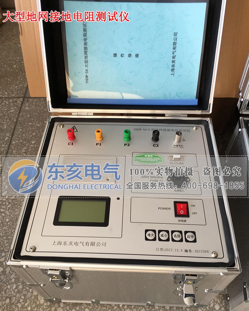 儀器根據(jù)《JJG984-2004接地導通檢定規(guī)程電阻測試儀》 《DL/T475-2006接地裝置特性參數(shù)測量導則》 《DL/T845.2-2004電阻測量裝置通用技術條件第二部分:工頻接地電阻測試儀》生產制造 YHDW-5A型大型接地電阻測試儀,是可測變電站地網(4Ω)、水火電廠、微波站(10Ω)、避雷針(10Ω)多用機型,采用了新型變頻交流電源,并采用了微機處理控制和信號處理等措施,很好的解決了測試過程中的抗干擾問題,簡化了試驗操作過程,提高了測試結果的精度和準確性,大大降低了試驗人員的勞動強度和試驗成本。 本儀器適用于測試各類接地裝置的工頻接地阻抗、接地電阻、輔助機等工頻特性參數(shù)以及土壤電阻率。本儀器采用變頻抗干擾技術,能在強干擾環(huán)境下準確測得工頻50Hz下的數(shù)據(jù)。